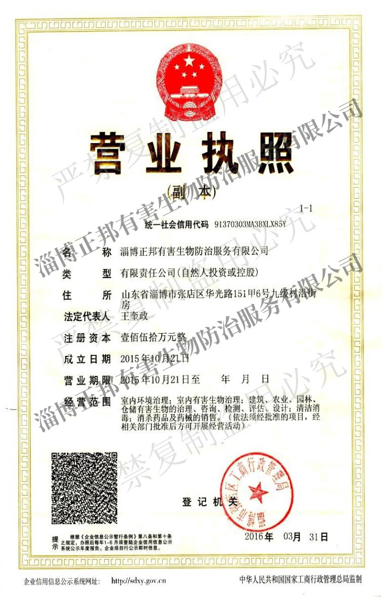 您好,歡迎訪(fǎng)問(wèn)正邦有害生物防治服務(wù)有限公司,是知名的淄博殺蟲(chóng)公司,淄博滅老鼠公司,淄博滅蟑螂公司~